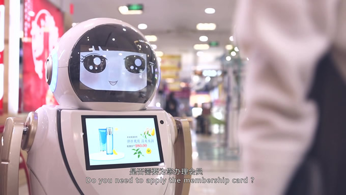 會(huì)說(shuō)英文的迎賓機(jī)器人