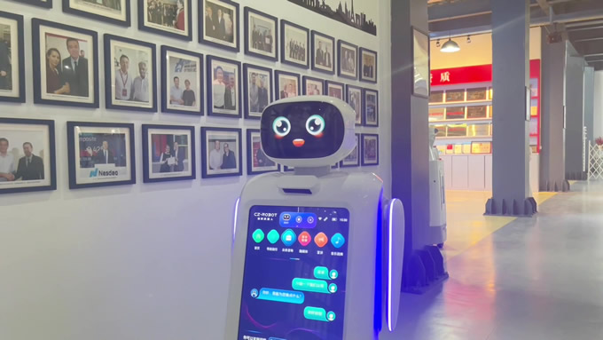 創(chuàng)澤智能消毒機器人和智能大屏機器人等多款機器人亮相蘭洽會,彰顯了創(chuàng)澤AI技術實力與場景深耕能力