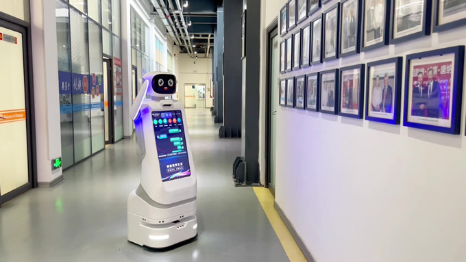 創(chuàng)澤智能消毒機器人和智能大屏機器人等多款機器人亮相蘭洽會,彰顯了創(chuàng)澤AI技術實力與場景深耕能力
