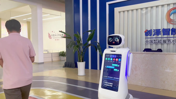 創(chuàng)澤智能消毒機器人和智能大屏機器人等多款機器人亮相蘭洽會,彰顯了創(chuàng)澤AI技術實力與場景深耕能力