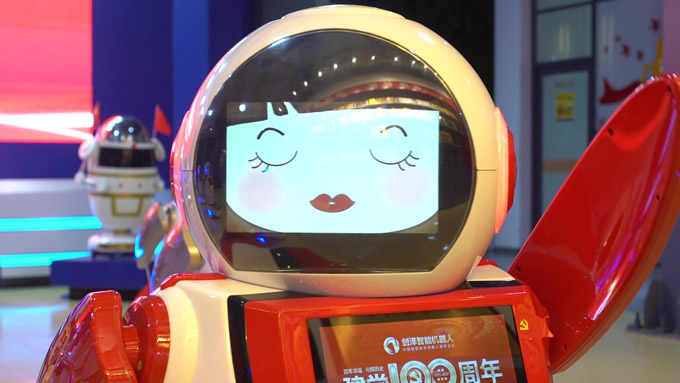會(huì)說(shuō)英文的迎賓機(jī)器人