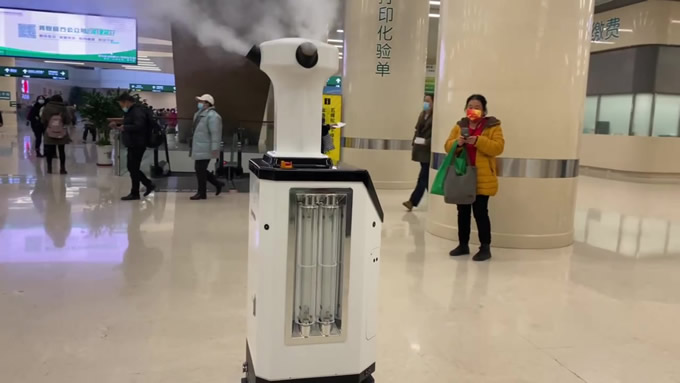 上海世博展覽館方艙醫(yī)院使用的消毒機器人