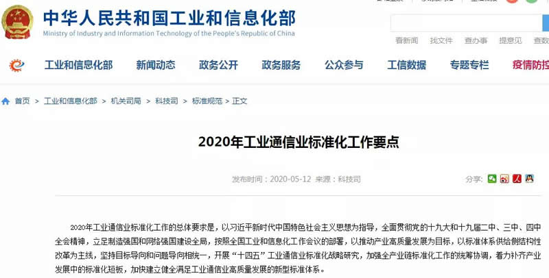 2020年5月12日,工信部發(fā)布《2020年工業(yè)通信業(yè)標(biāo)準(zhǔn)化工作要點》,提出聚焦5G網(wǎng)絡(luò)與應(yīng)用、人工智能、工業(yè)互聯(lián)網(wǎng)、物聯(lián)網(wǎng)、數(shù)據(jù)中心、車聯(lián)網(wǎng)、智能制造、無人機(jī)、超G清視頻、虛擬現(xiàn)實等重點L域,以專項方式成體系推進(jìn)重點L域行業(yè)標(biāo)準(zhǔn)制定工作,促進(jìn)產(chǎn)業(yè)基礎(chǔ)能力和產(chǎn)業(yè)鏈現(xiàn)代化水平提升。