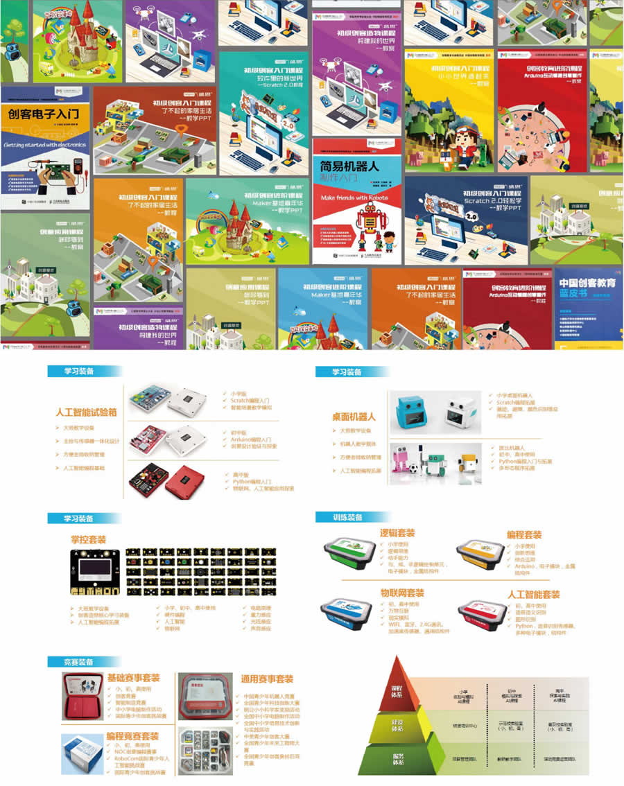 主要分為基礎(chǔ)裝備、訓(xùn)練裝備和競(jìng)賽裝備。基礎(chǔ)裝備主要服務(wù)于大班教學(xué),主要進(jìn)行人工智能編程基礎(chǔ)課程開展,訓(xùn)練裝備主要服務(wù)于主題式集中訓(xùn)練,而競(jìng)賽裝備主要用于開展各類人工智能競(jìng)賽。