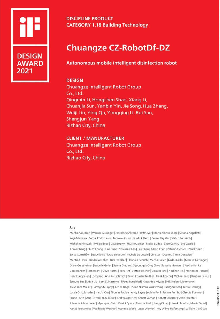 “好的設(shè)計賦予產(chǎn)品靈魂”。今年iF設(shè)計獎共有來自52個的近10000件作品參賽,評選過程競爭十分激烈,入選2021年iF設(shè)計獎的移動式消毒機器人企業(yè)共有兩家:的創(chuàng)澤集團和丹麥的Blue Ocean Robotics。創(chuàng)澤集團榮獲此次獎項表明其創(chuàng)新產(chǎn)品設(shè)計和品質(zhì)獲得了國際認可,也是對創(chuàng)澤集團AI應(yīng)用創(chuàng)新引L力的肯定。