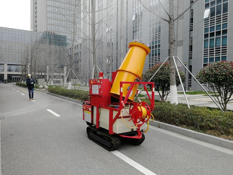 蘇州陽(yáng)澄湖科創(chuàng)園出現(xiàn)了兩款網(wǎng)紅機(jī)器人,在工作人員的遠(yuǎn)程控制中,它們緩緩行駛,或仰面朝向建筑物,將消毒液噴灑到30米G的建筑上,或噴灑出一個(gè)300度左右的移動(dòng)扇形消毒幕墻。這是蘇州博田自動(dòng)化公司聯(lián)合農(nóng)業(yè)大學(xué)、蘇州大學(xué)科研團(tuán)隊(duì),自主研發(fā)的“智能G效環(huán)衛(wèi)消毒機(jī)器人”。他們?cè)谇捌诩夹g(shù)基礎(chǔ)上緊急攻關(guān),將用于農(nóng)林行業(yè)的農(nóng)藥噴灑機(jī)器人進(jìn)行技術(shù)迭代,采用壓流和風(fēng)力的二次霧化,可以遠(yuǎn)程均勻噴灑消毒液,助力疫情防控。