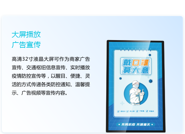 32寸主屏搭載可定制化模塊,提供迎賓接待、業(yè)務(wù)咨詢、體溫監(jiān)測(cè)等特色服務(wù)的智能大屏機(jī)器人?蓪(shí)現(xiàn)接待講解、引導(dǎo)跟隨、宣傳巡邏等功能,還可提供人臉識(shí)別、二維碼掃描、身份證讀取、叫號(hào)、打印等特色服務(wù)。