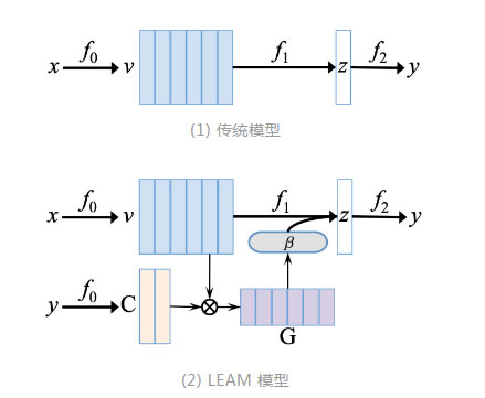 圖 3:LEAM模型中詞語(yǔ)和類別標(biāo)簽之間的語(yǔ)義交互(傳統(tǒng)方法和LEAM模型的對(duì)比)