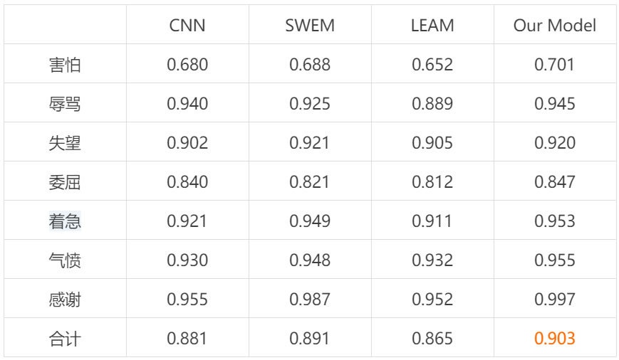 圖 5 給出了在線情感安撫的三個(gè)示例,分別對(duì)應(yīng)上述的三種不同層面的回復(fù)機(jī)制。 表 2:需要安撫的情感分類效果對(duì)比
