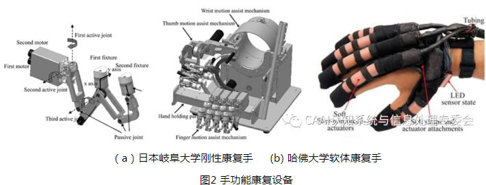 腦卒中、意外事故和老齡化等造成的腦損傷患者數(shù)量大幅度增加,由腦損傷引起的手運動功能障礙直接影響患者的生活質(zhì)量。傳統(tǒng)的治療手段主要依靠康復醫(yī)師輔助患者關(guān)節(jié)活動度和肌力訓練,但其訓練效果受醫(yī)生經(jīng)驗和業(yè)務水平及訓練時間等因素的影響。因此有很多研究者研發(fā)了相關(guān)的康復訓練設備輔助患者訓練以重新獲取肢體的運動技能[1]。