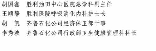 王順靜 勝利醫(yī)院呼吸消化內(nèi)科護士長胡凱 齊魯石化公司經(jīng)濟保衛(wèi)部干事