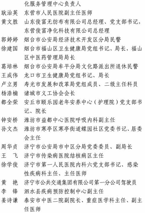 葛培林煙臺市公安局牟平分局文化路派出所退休民警王成偉龍口市衛(wèi)生健康局黨組書記、局長