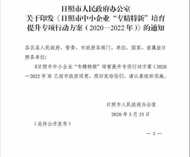 全文: 日照市中小企業(yè)“專精特新”培育提升專項行動方案(2020—2022年)