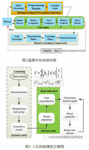 本文提出了一種新型的觸覺肌電感知機制和基于隱半馬爾科夫模型-G斯混合理論的機器人學(xué)習(xí)框架。操作者通過調(diào)節(jié)自身的肌肉活性來應(yīng)對外界環(huán)境的變化,同時觀察和記錄人機協(xié)作過程中的肌肉活動情況。利用采集的肌電信號和提出的任務(wù)學(xué)習(xí)框架,遙操作機器人系統(tǒng)可以自然地與外界環(huán)境進行交互、編碼人機協(xié)作任務(wù)和生成任務(wù)模型,從而提升系統(tǒng)的類人化操作行為和智能化程度。