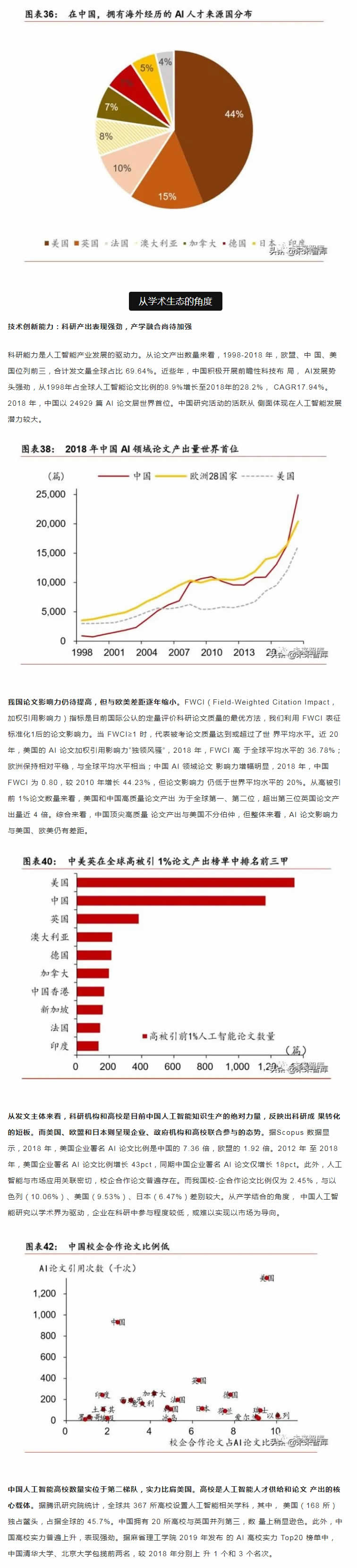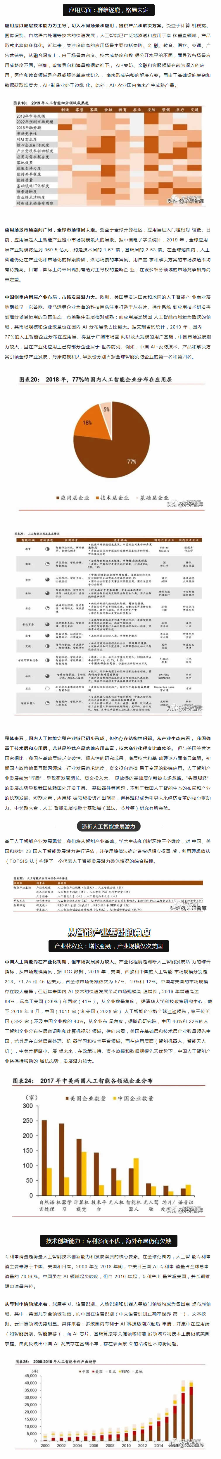 從中短期看,技術(shù)優(yōu)化、落地場(chǎng)景的開拓和滲透是是主要的增長(zhǎng)點(diǎn);從長(zhǎng)期看,智能生 態(tài)體系建設(shè)才是彎道超車的必由之路。人工智能產(chǎn)業(yè)的核心競(jìng)爭(zhēng)力在于生態(tài)體系的建設(shè), 包括大數(shù)據(jù)、算法理論、底層技術(shù)、應(yīng)用生態(tài)、人才儲(chǔ)備等層面。而我國(guó)人工智能產(chǎn)業(yè)生 態(tài)和基礎(chǔ)設(shè)施建設(shè)正處于探索期,如何實(shí)現(xiàn)核心技術(shù)的突破和拓寬人工智能技術(shù)與社會(huì)經(jīng) 濟(jì)融合場(chǎng)景著力點(diǎn)在于人才儲(chǔ)備和持續(xù)的研發(fā)投入。從人才的角度,收窄技術(shù)差距的根本 在于優(yōu)化人的知識(shí)結(jié)構(gòu)和能力。當(dāng)前政策應(yīng)側(cè)重建立人才培養(yǎng)體系,為人工智能打造人才 資源池,尤其是在基礎(chǔ)學(xué)科L域突破人才瓶頸。同時(shí),打破“唯數(shù)量論”的科研評(píng)價(jià)和考 核體系,改變?nèi)瞬偶?lì)機(jī)制勢(shì)在必行。我國(guó)人工智能專利申請(qǐng)和科研產(chǎn)出數(shù)量L先, 但質(zhì)量堪憂。唯有從源頭改變?cè)u(píng)價(jià)機(jī)制,才能扭轉(zhuǎn)“量多而質(zhì)優(yōu)”的問題。從研發(fā)的角度, 企業(yè)技術(shù)優(yōu)化和創(chuàng)新能力是解決產(chǎn)業(yè)痛點(diǎn)的關(guān)鍵;A(chǔ)研究的投入周期長(zhǎng)、不確定性大、 和風(fēng)險(xiǎn)G特點(diǎn)決定了其難以短期內(nèi)獲得投資回報(bào),但基礎(chǔ)L域的突破將為經(jīng)濟(jì)帶來(lái)長(zhǎng)期和 廣泛的溢出效應(yīng),因此,國(guó)內(nèi)更應(yīng)關(guān)注底層技術(shù)的研發(fā)投入,扭轉(zhuǎn)傳統(tǒng)技術(shù)路徑,顛覆核 心技術(shù)受制于人的被動(dòng)局面。此外,人工智能在賦能機(jī)器模擬人類進(jìn)行決策的同時(shí)產(chǎn)生的 倫理道德、隱私保護(hù)和社會(huì)安全問題值得關(guān)注。由于法律法規(guī)存在滯后性,尚無(wú)法對(duì)人工 智能技術(shù)進(jìn)行有效監(jiān)管。我國(guó)應(yīng)加快人工智能倫理研究,及早識(shí)別人工智能治理風(fēng)險(xiǎn)。