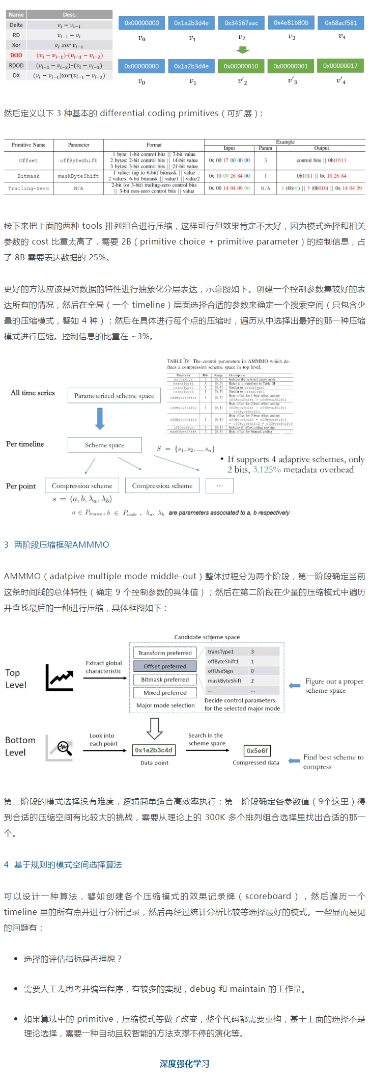 深度學(xué)習(xí)的本質(zhì)是做決策,用它解決具體的問題時(shí)很重要的是找到契合點(diǎn),合理建模,然后整理數(shù)據(jù)優(yōu)化 loss 等終較好地解決問題。在過去的一段時(shí)間,我們在用深度強(qiáng)化學(xué)習(xí)進(jìn)行數(shù)據(jù)壓縮上做了一些研究探索并取得了一些成績,已經(jīng)在 ICDE 2020 research track 發(fā)表(Two-level Data Compression using Machine Learning in Time Series Database)并做了口頭匯報(bào)。在這里做一個(gè)整體粗略介紹,希望對其它的場景,至少是其它數(shù)據(jù)的壓縮等,帶來一點(diǎn)借鑒作用。