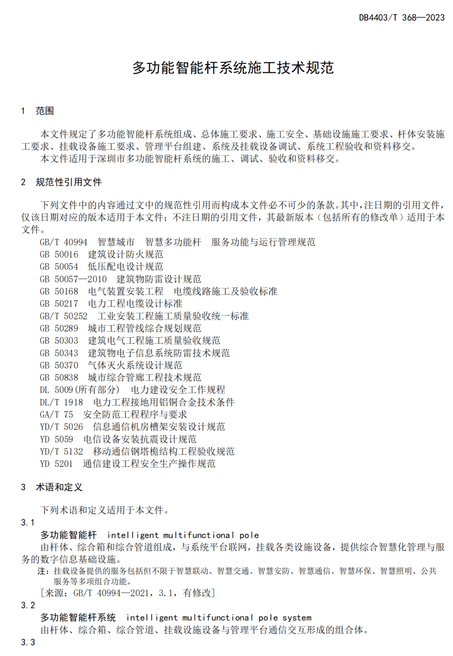 附件:深圳市地方標(biāo)準(zhǔn)《多功能智能桿系統(tǒng)施工技術(shù)規(guī)范》