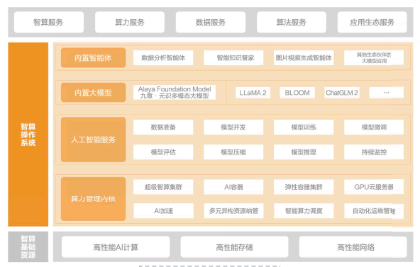 Alaya NeW智算操作系統(tǒng)(以下簡稱:Alaya NeW),由九章云JDataCanvas 自主研發(fā),可有效管理、調(diào)度各種算力資源,提供智算服務(wù),落地各類智算應(yīng)用。作為智算中心的“中樞神經(jīng)”,Alaya NeW突破異構(gòu)算力適配、異構(gòu)算力調(diào)度等關(guān)鍵技術(shù),實現(xiàn)了包括算力統(tǒng)籌與智能調(diào)度的底層硬件異構(gòu)性兼容;簡單易用且以集群為優(yōu)先的策略,原生適合AIG性能計算,原生支持AI大模型+小模型的低門檻構(gòu)建、訓(xùn)練和推理;并支持與通用大模型、行業(yè)大模型及各類大模型應(yīng)用組合疊加,實現(xiàn)一體化、開放化、標(biāo)準(zhǔn)化的AI模型服務(wù)。