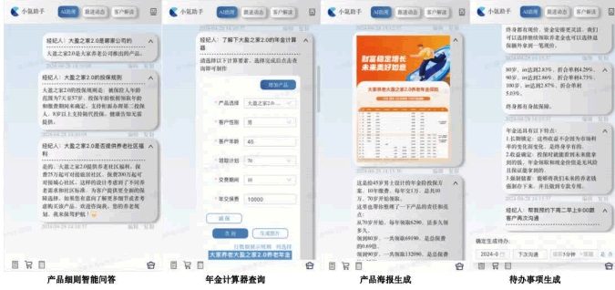 保險AI大模型助手已成功嵌入超過百款保險產(chǎn)品,并支持自動解讀保險條款,能夠針對涉及產(chǎn)品條款和年金計算等復(fù)雜問題進(jìn)行實時響應(yīng)。通過保險AI大模型助手的應(yīng)用,可以實現(xiàn)以下效益: