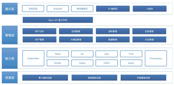 車輛智能運維助手集成了日常車輛運維所涉及的各項服務內(nèi)容,旨在提供多面、G效、智能的車輛維護和管理解決方案,系統(tǒng)架構(gòu)如下圖所示: