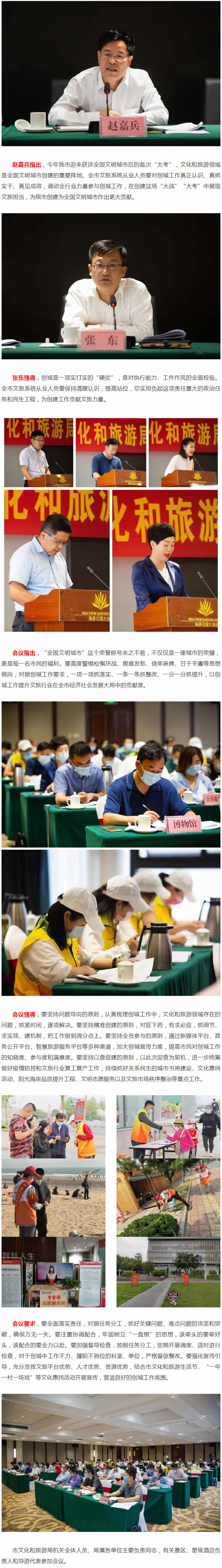 會(huì)議對(duì)市文化和旅游局2020年度創(chuàng)建全國(guó)文明城市工作進(jìn)行了安排部署,圖書館、博物館、旅游景區(qū)、星級(jí)酒店和導(dǎo)游代表分別作了表態(tài)發(fā)言。