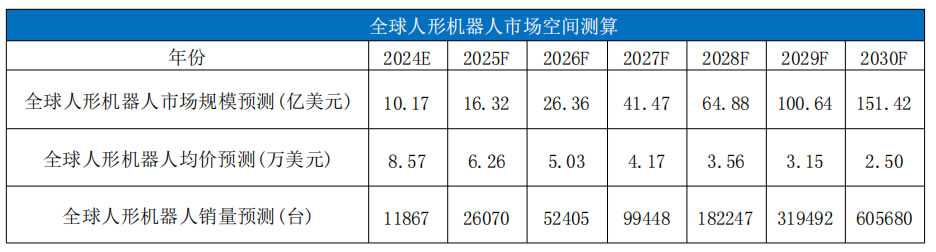 到2030年人形機(jī)器人市場(chǎng)規(guī)模將達(dá)到151億美元,2024-2030年CAGR 將超過56%,人形機(jī)器人銷量將從1.19萬臺(tái)增長至