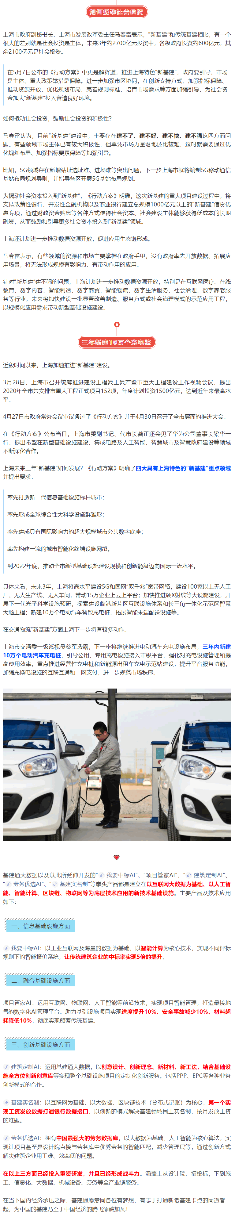 5月7日,上海市公開《上海市推進(jìn)新型基礎(chǔ)設(shè)施建設(shè)行動方案(2020-2022年)》(下簡稱《行動方案》),要求三年內(nèi)推動上海新型基礎(chǔ)設(shè)施建設(shè)規(guī)模和創(chuàng)新能級邁向國際出色水平。其中,強(qiáng)調(diào)“社會資金加大‘新基建’投入”成為上海版“新基建”方案的重點(diǎn)之一。