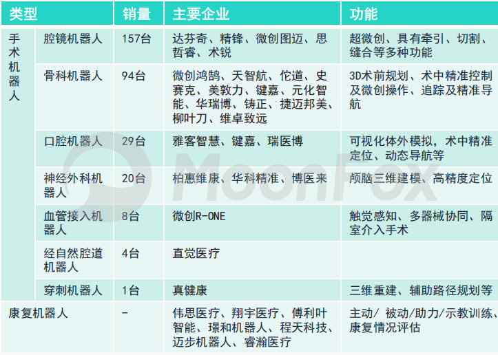 據(jù)MedRobot統(tǒng)計,2016年至2023年12月25日,已有56個手術(shù)機器人產(chǎn)品在我國獲批上市,2024年中國手術(shù)機器人銷量達313臺及以上,其中以腔鏡機器人、骨科機器人為主。