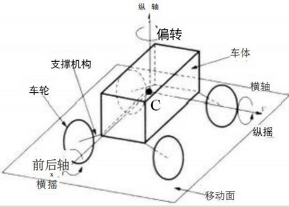 (3)車輪支撐機構(gòu):車輪支撐機構(gòu)位于車輪與車體之間,決定兩者在空間上的 關系,包括自由度在內(nèi)。車輪支撐機構(gòu)承載車輪以上部分的載荷,并將它分解到各 個車輪上,懸掛裝置、緩沖裝置也應該包含在車輪支撐機構(gòu)之內(nèi)。