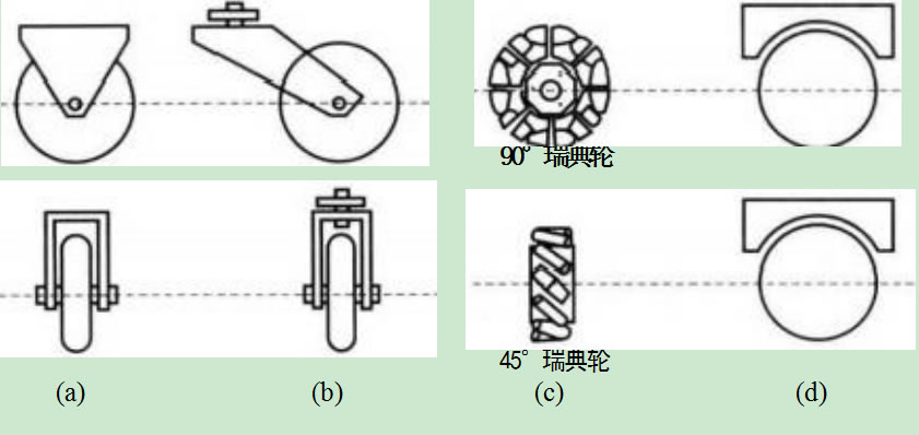 按照有無推進力功能,車輪可以分為驅(qū)動輪和從動輪兩大類。根據(jù)單個車輪 的自由度,車輪可劃分為一般車輪、球形輪、全方位輪等幾類。車輪與移動地面之 間的接觸區(qū)分為滑動接觸、滾動接觸兩種。