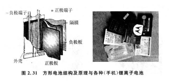 鋰電池是指電化學(xué)體系中含有鋰(包括金屬鋰、鋰合金、鋰離子、鋰聚合物),由鋰金 屬或鋰合金為負(fù)極材料、使用非水電解質(zhì)溶液的電池。鋰電池大致分為鋰金屬電池和鋰 離子電池兩類。鋰金屬電池內(nèi)含金屬態(tài)鋰,它通常是不可充電的。鋰離子電池不含有金 屬態(tài)鋰,它可以充電。Z早出現(xiàn)的鋰電池來(lái)自于偉大的發(fā)明家愛(ài)迪生,他使用了反應(yīng) Li+MnO₂=LiMnO₂ 。 該反應(yīng)為氧化還原反應(yīng)和放電。由于鋰金屬的化學(xué)特性非; 潑,使得鋰金屬的加工和保存及使用對(duì)環(huán)境要求非常高,所以鋰電池長(zhǎng)期沒(méi)有得到廣泛 應(yīng)用。但是,鋰電池現(xiàn)在已經(jīng)成為了主流,如圖2.31所示。鋰離子電池中因?yàn)椴缓兄?金屬鎘,與鎳鎘電池相比較,它可以大大減少對(duì)環(huán)境的污染。