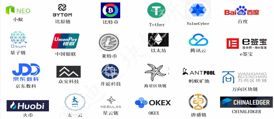 阿里巴巴 中國平安 微眾銀行 騰訊 百度 眾安服 中國聯(lián)通 浪潮 京東 國家電網 深圳金融科技 工商銀行 元征腿 泰康 華為 中國銀聯(lián)