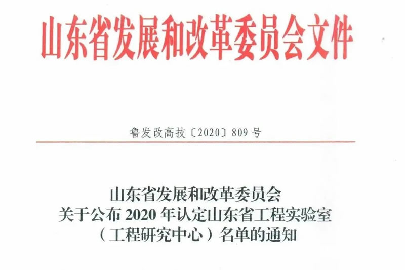 山東省發(fā)展改革委發(fā)布《關(guān)于公布2020年認(rèn)定山東省工程實驗室(工程研究中心)名單的通知》(魯發(fā)改G技〔2020〕809號)
