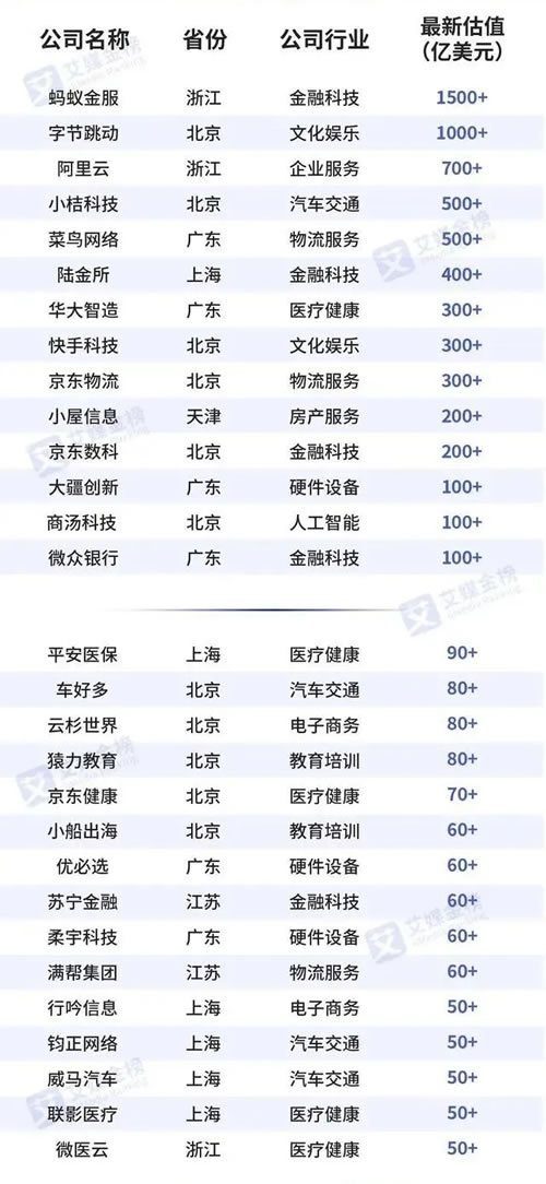 iiMedia Research(艾媒咨詢)數(shù)據(jù)顯示,2020中國(guó)新經(jīng)濟(jì)獨(dú)角獸200強(qiáng)榜單中,螞蟻金服、字節(jié)跳動(dòng)、阿里云L居前3位,估值分別突破1500億美元、1000億美元、700億美元;此外排名前10的企業(yè)依次為小桔科技、菜鳥(niǎo)網(wǎng)絡(luò)、陸金所、華大智造、快手科技、京東物流、小屋信息,估值均在200億美元以上;排名11-20位的企業(yè)依次為京東數(shù)科、大疆創(chuàng)新、商湯科技、微眾銀行、平安醫(yī)保、車(chē)好多、云杉世界、猿力教育、京東健康、小船出海,估值均在60億美元以上。