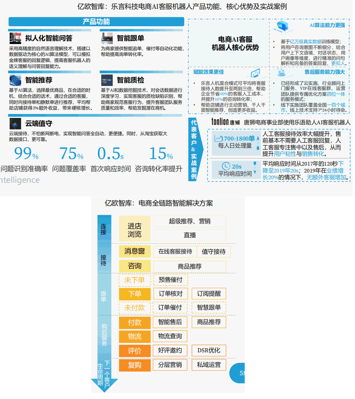 在電商L域,樂(lè)言科技自主研發(fā)了面向淘寶、天貓等平臺(tái)的AI客服機(jī)器人“樂(lè)語(yǔ)助人” ,具備G準(zhǔn)確的語(yǔ)言理解能力,可模擬金牌客