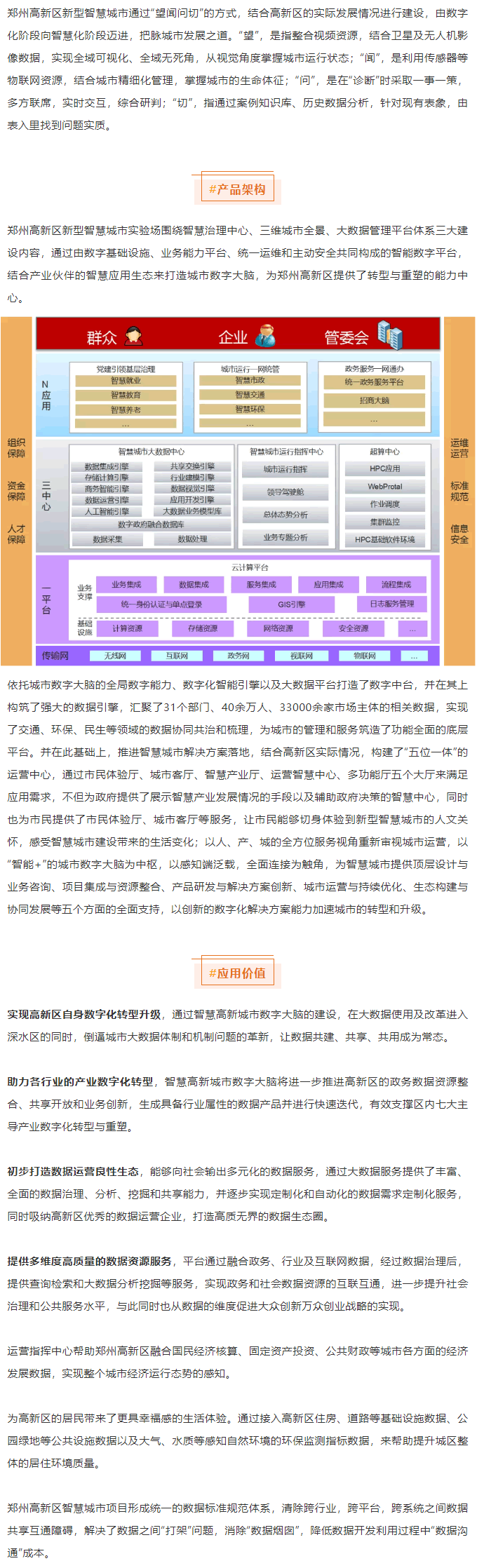 報告闡述了標準規(guī)范、D層設計、基礎設施、智慧中樞、智慧應用、運營服務、網(wǎng)絡安全七大環(huán)節(jié),結合新型智慧城市發(fā)展趨勢、智慧城市產業(yè)供給水平及市場主體情況