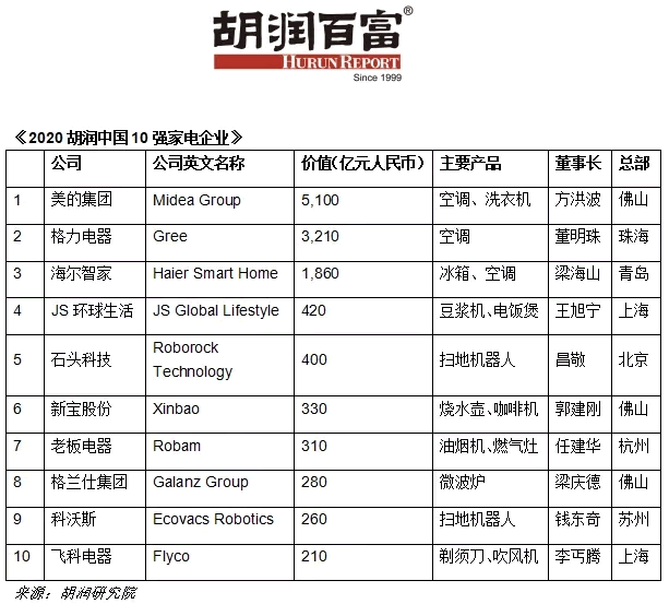 格蘭仕集團(tuán)以280億價(jià)值排名第八。格蘭仕集團(tuán)是一家以微波爐、空調(diào)、冰箱、洗衣機(jī)、生活電器為核心的白色家電集團(tuán)。世界上每?jī)膳_(tái)微波爐中,號(hào)稱就有一臺(tái)出自格蘭仕;格蘭仕自主開發(fā)的空調(diào)、冰箱、洗衣機(jī)及電烤箱、電飯煲、電磁爐、電水壺等小家電為170多個(gè)國(guó)家和地區(qū)的消費(fèi)者提供便利。