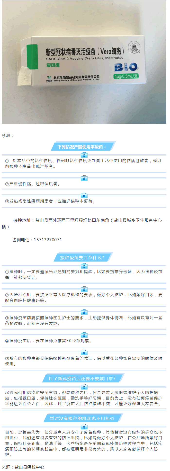 本次接種的疫苗來(lái)自北京生物制品研究所有限責(zé)任公司,需接種兩針,間隔14-28天。