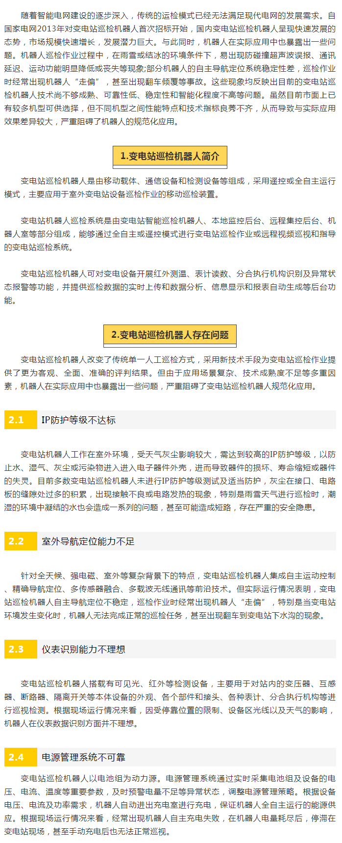 隨著我國(guó)智能電網(wǎng)和特G壓建設(shè)的G速發(fā)展,變電站巡檢機(jī)器人產(chǎn)業(yè)呈現(xiàn)出巨大的成長(zhǎng)潛力和發(fā)展空間。如何提升變電站巡檢機(jī)器人安全性和可靠性,切實(shí)滿(mǎn)足變電站設(shè)備巡檢作業(yè)需求,是變電站亟需考慮的問(wèn)題。本文從質(zhì)量保障的角度出發(fā),闡述了變電站巡檢機(jī)器人在功能、性能、安全等方面的標(biāo)準(zhǔn)要求與測(cè)試方法,提出變電站巡檢機(jī)器人系統(tǒng)質(zhì)量保障體系建設(shè)方案,以促進(jìn)變電站巡檢機(jī)器人安全可靠地替代人工巡檢作業(yè)。
