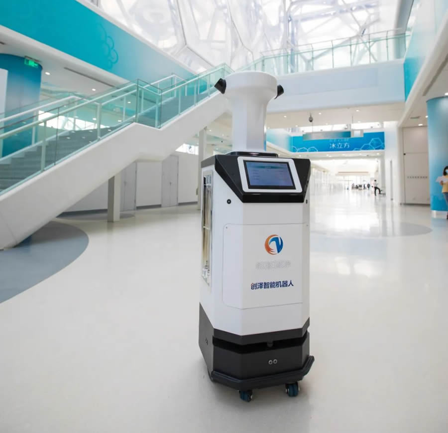 “冰立方”將成為冬奧會(huì)歷史上體量大的冰壺場(chǎng)館、世界水上項(xiàng)目和冰上項(xiàng)目均可運(yùn)行的雙奧場(chǎng)館,提供智能化、G水準(zhǔn)、全方位的賽事服務(wù)館,也是世界上在泳池上架設(shè)冰壺賽道的奧運(yùn)場(chǎng)館。創(chuàng)澤智能消毒機(jī)器人可對(duì)場(chǎng)館內(nèi)的觀眾區(qū)、媒體工作區(qū)、運(yùn)動(dòng)員區(qū)、比賽大廳等8600平方米的室內(nèi)大面積公共區(qū)域開展消毒保障,解決了疫情防控下場(chǎng)館分區(qū)防疫消殺的難點(diǎn)問題,確保測(cè)試賽有序推進(jìn)。