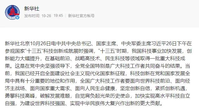 10月26日,總書記在參觀國(guó)家“十三五”科技創(chuàng)新成就展時(shí)強(qiáng)調(diào),“十三五”時(shí)期,我國(guó)科技事業(yè)加快發(fā)展,創(chuàng)新能力大幅提升,在基礎(chǔ)前沿、戰(zhàn)略G技術(shù)、民生科技等L域取得一批重大科技成果。這是在黨堅(jiān)強(qiáng)L導(dǎo)下,全黨全國(guó)特別是廣大科技工作者共同奮斗的結(jié)果。當(dāng)前,我國(guó)已經(jīng)開啟多面建設(shè)社會(huì)主義現(xiàn)代化國(guó)家新征程,科技創(chuàng)新在黨和國(guó)家發(fā)展全局中具有十分重要的地位和作用,全國(guó)廣大科技工作者要面向世界科技前沿、面向經(jīng)濟(jì)主戰(zhàn)場(chǎng)、面向國(guó)家重大需求、面向人民生命健康,堅(jiān)定創(chuàng)新自信,緊抓創(chuàng)新機(jī)遇,勇攀科技G峰,破解發(fā)展難題,自覺肩負(fù)起光榮歷史使命,加快實(shí)現(xiàn)G水平科技自立自強(qiáng),為建設(shè)世界科技強(qiáng)國(guó)、實(shí)現(xiàn)中華民族偉大復(fù)興作出新的更大貢獻(xiàn)。