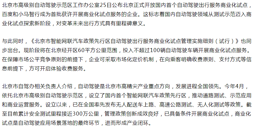 據(jù)了解,此次管理政策,從申請審核、試點(diǎn)管理、網(wǎng)絡(luò)數(shù)據(jù)安全、服務(wù)監(jiān)督與違規(guī)管理等方面對企業(yè)開展商業(yè)化出行服務(wù)進(jìn)行全方位詳細(xì)規(guī)范。在市場層面,鼓勵(lì)和引導(dǎo)自動(dòng)駕駛出行服務(wù)商業(yè)模式探索和創(chuàng)新,并統(tǒng)籌技術(shù)更新迭代和產(chǎn)業(yè)發(fā)展;在網(wǎng)絡(luò)數(shù)據(jù)安全層面,明確在商業(yè)化試點(diǎn)中采集的數(shù)據(jù)未經(jīng)批準(zhǔn)不得出境,同時(shí)要求企業(yè)進(jìn)行網(wǎng)絡(luò)安全管理;在申請審核方面,從事前、事中、事后三維度對申請主體、車、人、平臺(tái)等對象的合規(guī)性做出了詳盡要求;在服務(wù)監(jiān)督和違規(guī)管理方面,構(gòu)建新型的服務(wù)、客訴和定價(jià)等管理機(jī)制保障市場化公平競爭。