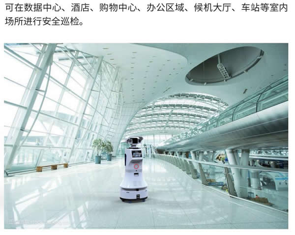 智能防爆機(jī)器人,它是一種綜合了自主導(dǎo)航、音視頻智能識(shí)別、危險(xiǎn)預(yù)警、人員識(shí)別、人體跟隨等多種智能技術(shù)相融合的綜合性安防機(jī)器人,可以協(xié)助人們完成重要場(chǎng)所的監(jiān)控巡邏保安工作,同時(shí)可結(jié)合固定監(jiān)控和環(huán)境信息的收集分析,構(gòu)成完整的安防監(jiān)控系統(tǒng),滿(mǎn)足數(shù)據(jù)中心、酒店、商場(chǎng)、辦公區(qū)域等室內(nèi)場(chǎng)所的安全巡檢需求。
