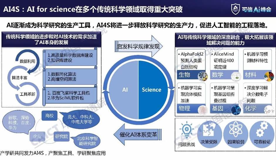 AI for Science在多個(gè)傳統(tǒng)科學(xué)L域取得重大突破。隨著人工智能技術(shù)的快速發(fā)展和大規(guī)模應(yīng)用,AI在逐漸成為科學(xué)研究新的生產(chǎn)工具,AI4S將進(jìn)一步釋放科學(xué)研究的生產(chǎn)力,促進(jìn)人工智能的工程落地。一方面,AI與傳統(tǒng)科學(xué)L域的深度融合,J大拓展該L域解決問題的能力,目前AI在生物、數(shù)學(xué)、材料、物理、基因、化學(xué)等基礎(chǔ)科學(xué)L域都取得了諸多成果和突破,并對科學(xué)研究范式產(chǎn)生了深刻的影響,例如,目前人工智能已經(jīng)能夠預(yù)測幾乎所有的生物蛋白質(zhì)的可能結(jié)構(gòu),被譽(yù)為人類在21世紀(jì)取得的重要的科學(xué)突破之一,可能開啟“數(shù)字生物學(xué)”的新時(shí)代。另一方面,傳統(tǒng)科學(xué)L域的進(jìn)步和對AI技術(shù)的需求加速了AI本身的發(fā)展。當(dāng)前產(chǎn)學(xué)研共同發(fā)力人工智能與科學(xué)的融合,產(chǎn)業(yè)界聚焦工具創(chuàng)新,開源工具和基于開源工具產(chǎn)生的創(chuàng)新成果呈爆發(fā)趨勢,AI4S的研究范圍也擴(kuò)展到了更多基礎(chǔ)問題L域。G校和研究院聚焦算法和應(yīng)用,用AI算法更好地將科學(xué)計(jì)算和物理模型相連接,進(jìn)而指導(dǎo)科學(xué)與產(chǎn)業(yè)創(chuàng)新。
