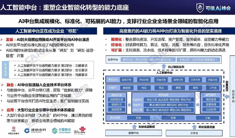 人工智能中臺(tái)重塑企業(yè)智能化轉(zhuǎn)型的能力底座。隨著企業(yè)從重視人工智能的“研發(fā)”,到“研發(fā)-運(yùn)營(yíng)”并重,AI開(kāi)發(fā)平臺(tái)也逐漸向AI中臺(tái)演進(jìn)。