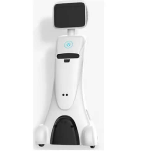 輪式移動(dòng)機(jī)器人,具有自主移動(dòng)及自主避障功能,可以 為患者提供醫(yī)療看護(hù)、遠(yuǎn)程監(jiān)控、遞送物品、互動(dòng)娛樂(lè)等服務(wù)。