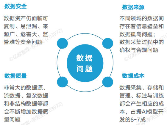 G質(zhì)量的數(shù)據(jù)是AI算法模型成功的重要保障。目前,數(shù)據(jù)的獲取、標(biāo)注到形成真正合適的數(shù)據(jù)仍占據(jù)AI解決方案的大部分資金與時間成本,同 時,數(shù)據(jù)的安全與確權(quán)問題也仍處于完善過程中。