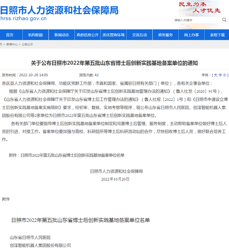 近日,日照市人力資源和社會(huì)保障局公示了2022年山東省博士后創(chuàng)新實(shí)踐基地?cái)M備案單位的名單,創(chuàng)澤集團(tuán)憑借優(yōu)秀的自主研發(fā)和創(chuàng)新能力,經(jīng)有關(guān)部門(mén)考察調(diào)研和專(zhuān)家評(píng)審,成功獲批山東省博士后創(chuàng)新實(shí)踐基地備案單位 。