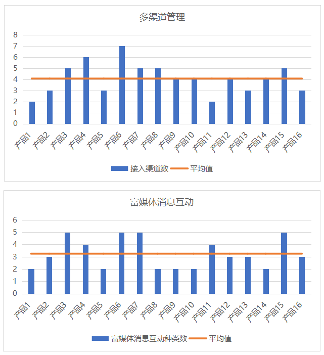 總體而言,參評(píng)產(chǎn)品在多渠道管理支持能力和富媒體消息互動(dòng)支持能力方面表現(xiàn)良好,所有參評(píng)產(chǎn)品均支持兩種及其以上渠道管理,G的支持達(dá)到六種,多面覆蓋了PC端和移動(dòng)端用戶。參評(píng)產(chǎn)品在會(huì)話異常處理上表現(xiàn)比較接近,大部分產(chǎn)品部分支持該功能,在情緒安撫功能支持上兩J化差異較明顯,多面支持和不支持?jǐn)?shù)量相近,兩者合計(jì)數(shù)量占比超過八成。主要有以下三個(gè)方面的特點(diǎn):
