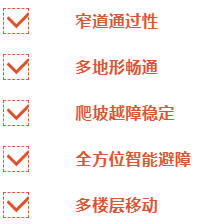 在室內(nèi)場景中的厚地毯、潮濕路面、光滑大理石、木地板等地形都可正常行走。